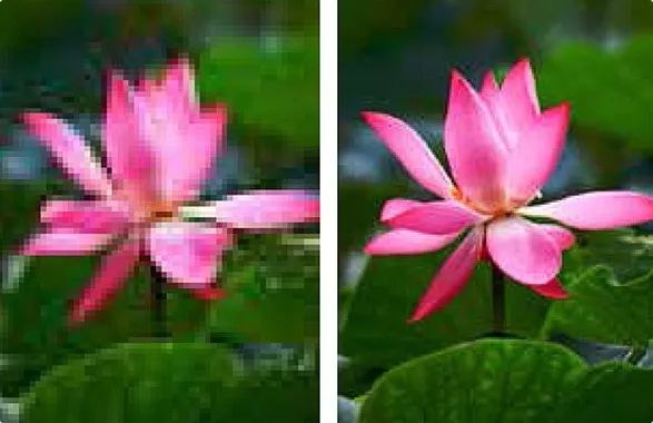 2.Min檢測(cè)尺寸決定了熱像儀捕捉細(xì)小尺寸的能力。尺寸越小,相同面積的檢測(cè)目標(biāo)畫(huà)面由更多像素組成,畫(huà)面更清晰。由左圈對(duì)比可見(jiàn),像素(馬賽克) 越小越清晰。