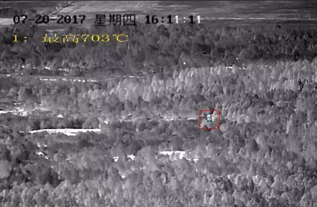 云臺實現(xiàn)了煙火的實時動態(tài)檢測,相對后端檢測的形式,提升了檢測效率,發(fā)現(xiàn)目標(biāo)更快速更準(zhǔn)確,規(guī)避由于遠(yuǎn)距離傳輸圖像延時、丟失帶來的漏檢。同時還可設(shè)置煙火屏蔽區(qū)域以及利用可見光進(jìn)行火情的清晰確認(rèn),利用可見光的同軸定位功能,無偏離同步定位查看細(xì)節(jié),同時,可見光可自動調(diào)整倍率快速聯(lián)動跟蹤,確認(rèn)火點。實測中,熱成像火點后,可見光立即同步調(diào)整與變焦,將火點區(qū)域置于畫面中心。