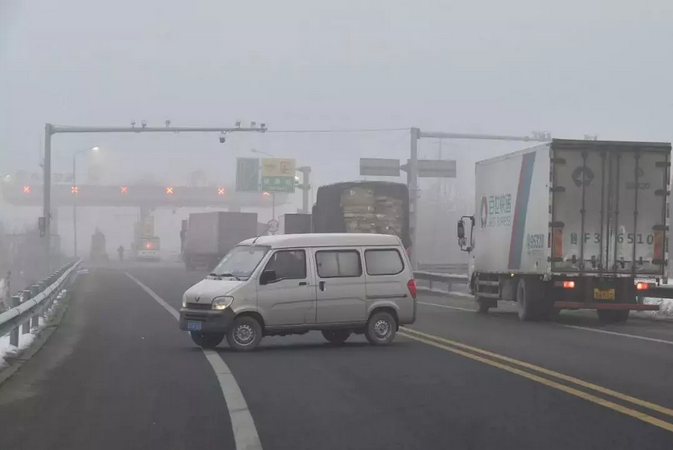 (山東部分高速路低能見度,截至目前,境內包括長深高速、京滬高速等在內的40多條高速的收費站封閉,實行臨時管制。)