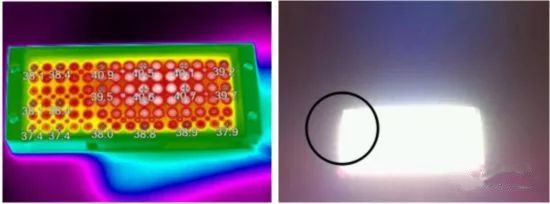 熱像儀通過紅外輻射檢測燈具中溫度分布的不同來確認問題燈珠的位置,或修正設計中的散熱問題。