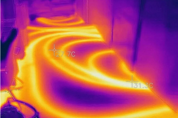 而通過手持式紅外熱像儀,暖通工程師使用手持式熱像儀就可以檢查有漏水嫌疑的地暖盤管,通過觀察管路各處溫度的明顯對(duì)比,輕易的辨別出具體的漏水點(diǎn),避免開鑿地面不準(zhǔn)確造成的失誤。