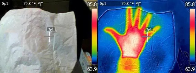 我們可以紅外熱像儀做一個(gè)有趣的小實(shí)驗(yàn):在一個(gè)溫暖的物體或人面前舉起一張薄薄的不透明的塑料片(如垃圾袋)。紅外輻射將穿透塑料,使熱相機(jī)能夠探測到塑料背后的帶有溫度的東西,而可見光卻被阻擋。但是要說明一下,這個(gè)技巧只適用于非常薄的塑料,厚塑料就會阻擋住紅外輻射。