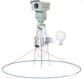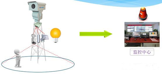 一旦有人靠近、攀爬基塔,告警系統(tǒng)啟動(dòng),安保攝像機(jī)錄像回傳至監(jiān)控中心并實(shí)時(shí)錄像,同時(shí),喇叭現(xiàn)場播放語音警示。監(jiān)控中心接收到報(bào)警信號(hào)后,立即通過語音對講系統(tǒng)對現(xiàn)場喊話。