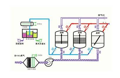 通過(guò)有機(jī)廢氣與液體吸收劑接觸,使其中的有機(jī)溶劑被吸收劑所吸收,再經(jīng)解吸,將有機(jī)溶劑除去或回收,并使吸收劑獲得再生重復(fù)利用。