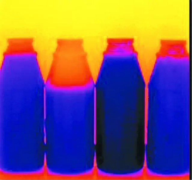 熱圖像顯示瓶子裝得過滿或未裝滿