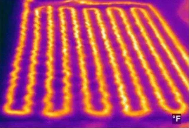 一個(gè)典型的實(shí)例是尋找地板加熱系統(tǒng)發(fā)生滲漏的位置。在紅外熱像儀的幫助下,加熱系統(tǒng)的滲漏點(diǎn)可以被檢修人員發(fā)現(xiàn)并及時(shí)維修。精確確定滲漏點(diǎn)位置可以避免不必要的開挖過程,節(jié)省開支。