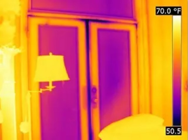 用于檢測(cè)空氣泄露點(diǎn)的常用方法是通過檢測(cè)空氣交換率并采用一種被稱為“風(fēng)門”的檢測(cè)過程。在該過程中,房屋內(nèi)會(huì)產(chǎn)生負(fù)壓。此時(shí),室外的壓力大于室內(nèi)的壓力,因此,空氣將會(huì)從密封不嚴(yán)的區(qū)域進(jìn)入。紅外熱像儀能夠快速檢測(cè)到流動(dòng)的氣流,密封不嚴(yán)的區(qū)域就可以很方便地被加以識(shí)別,并且在完成下一步工序之前解決問題,從而避免由潛在的施工問題變成花費(fèi)昂貴的棘手問題。