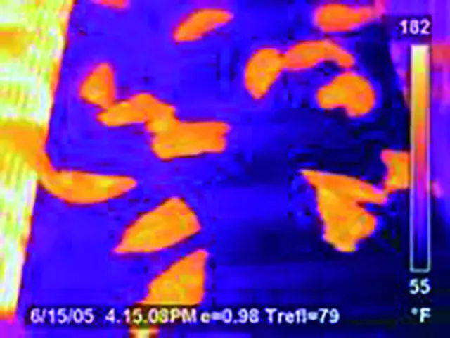 對(duì)屋頂滲漏系統(tǒng)進(jìn)行評(píng)估也是紅外熱像儀常見的應(yīng)用之一。水蓄熱的時(shí)間比正常屋頂材料蓄熱的時(shí)間長(zhǎng),當(dāng)屋頂在夜間冷卻下來后,有水的區(qū)域由于其溫度比其他區(qū)域高,因此,可以輕松被紅外熱像儀檢測(cè)出來。僅僅修理屋頂?shù)臐B漏區(qū)域而不用更換整個(gè)屋頂,大大節(jié)省了成本。
