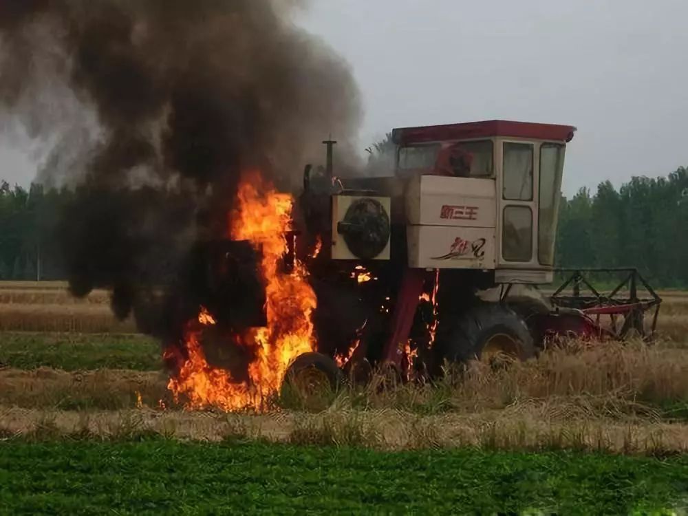 2、機(jī)器摩擦易引發(fā)火災(zāi),因收割機(jī)連續(xù)工作,輸送帶摩擦發(fā)熱,火花引燃秸稈,從而引發(fā)火災(zāi)。